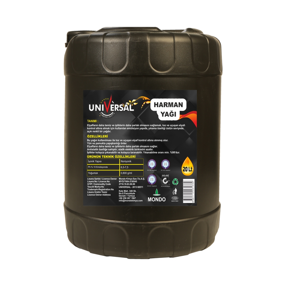 Harman Yağı parafinik esaslı baz yağlara özel performanslı emülgatörler eklenerek üretilmiş, elyaf-metal, elyaf-elyaf sürtünmesini en aza indirerek yıpranma ve kopmaları engellenmesini sağlayan üstün performanslı harman yağıdır. Harman Yağı, depolanırken çok soğuğa veya çok sıcağa maruz bırakılmamalıdır. Kullanılmadan önce oda sıcaklığına getirilmesi tavsiye edilir.